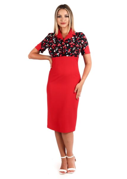 Rochie in clini accesorizata cu cordon rosu uni in talie 02R2087i2087