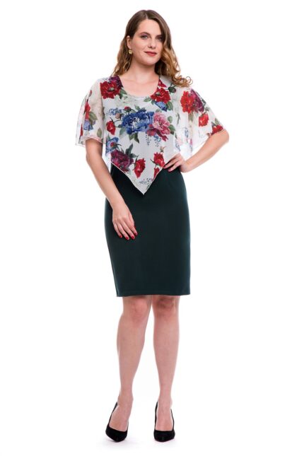 Rochie conica verde cu capa din voal imprimat 01R26i2043