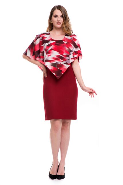 Rochie conica grena cu capa din voal imprimat 01R10i2049
