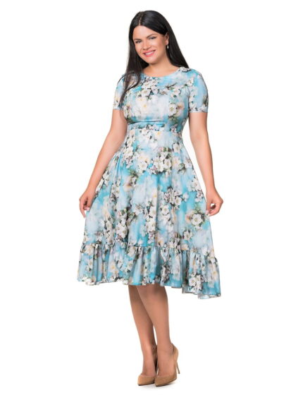 Rochie conica bleu cu capa din voal imprimat 01R04i2050