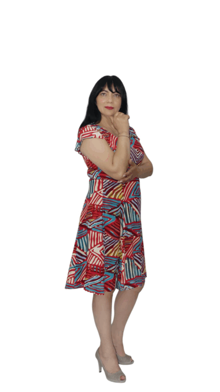 Rochie de vara din vascoza cu imprimeu abstract multicolor