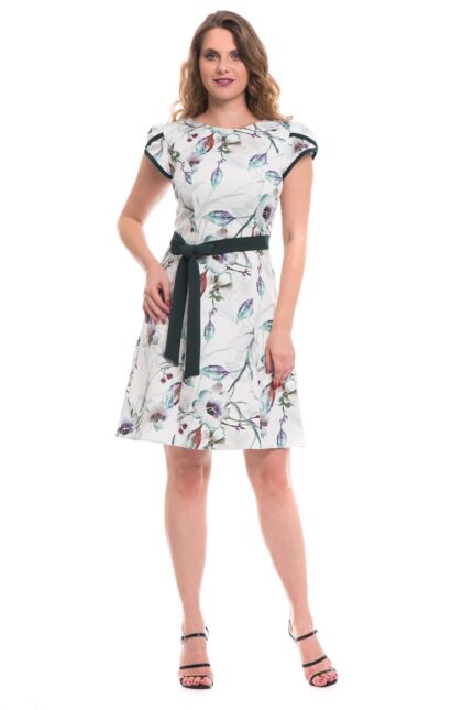 Rochie office in clini imprimata multicolor, accesorizata prin cordon verde inchis uni 08R233i233
