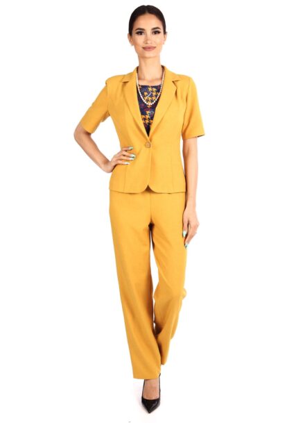 Costum elegant galben mustar cu bluza si pantalon 47SBP15i1698