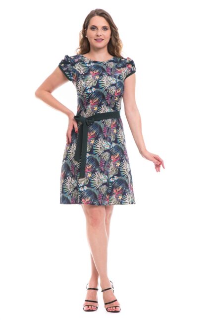 Alege aceasta rochie midi rosie cu imprimeu negru pentru tinutele estivale. O poti imbraca atat la serviciu cat si cu alte ocazii.
